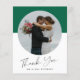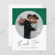 Minimalist trendy modern emerald green and white stylish calligraphy script budget affordable wedding thank you card personalised with your photo, custom text, and signature on both sides. ++++++++++ NOTE that the colours can be changed to match your wedding colour scheme. If comfortable doing it, you can change them after selecting CUSTOMIZE IT option. ++++++++++ PLEASE READ THIS BEFORE PURCHASING! This is a budget affordable wedding card printed on a paper sheet (each sheet has one card). ++++ For the best rapport price-quality, our advice is to choose the Semi-Gloss paper type (it is thick enough to be used for stationery) ++++ If you need envelopes, choose the ENVELOPE OPTION. +++ Double-check all the information and spelling of your text because you will receive exactly what you see - no one else will check anything before printing. ++++ This card is designed for size 4.5" x 5.6". In the case you choose another size of the card and text goes outside page, everything needs to be fixed before adding the product to cart. Please ask Live Design Service for help.