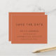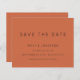Simple Typography Terracotta Save The Date. A budget price SMALLER 4.5” x 5.6” alternative. Available in a SEMI-GLOSS 110 lb CARD STOCK which is the default option (thicker for invitations), OR a SATIN FINISH 80 lb THINNER PAPER STOCK (ideal for enclosures). Envelopes are an optional extra and are slightly larger than the card size. Simple elegance with Save The Date in a modern set script.The rest of the text you can easily personalise.Shown here in black on terracotta however the text and background colours can be changed if you wish via the customise further option.