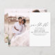 Budget Wedding Save the Date Cards that have a photo on the front and back. The Save the Date cards contain a modern hand lettered cursive script typography that are elegant, simple and modern to use after you wedding day celebration.
