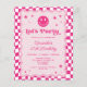 Budget Smile Face Hot Pink Retro Birthday Invite