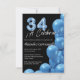 Budget Spanish Blue Balloons Black 34th Birthday Invitation