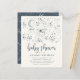 Celestial-themed baby shower invitation featuring hand-drawn starry night sky constellation with the moon, stars, and galaxy. "Baby shower" appears in a cute handwritten script in a midnight blue shade against a light cream colour. As part of the budget selection here on Zazzle, these invitations do not come with envelopes nor do they fit snugly in a standard-sized envelope. The closest size is A6 but there will be a gap of approximately half an inch. If you don't mind the lack of snugness you could use such widely available A6 envelopes. Otherwise, this design can be transferred to a standard 5x7 format (which comes with envelopes) using the design transfer tool. As a rough guide, as of the time of writing, 100 budget invitations (including a volume discount) would cost around $39 whereas 100 standard 5x7 invites including envelopes would cost approximately $135. Your mileage may vary depending on Zazzle's available promo codes, site-wide sales, or changes in pricing.