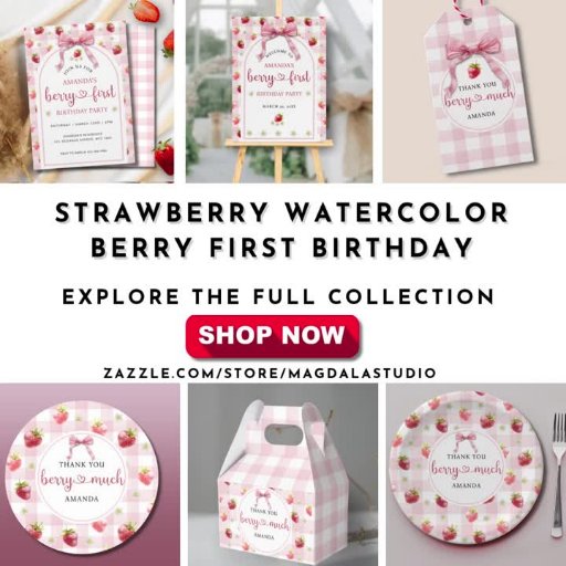 Strawberry Watercolor Berry First BirthdayDesigned by Magdaline Annie Martin Oming