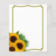 Budget sunflower with gold frame and greenery leaves decorate baby shower invitation.