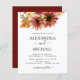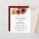 Budget Burgundy and Yellow Sunflower Rustic Outdoor Foliage Watercolor Spring Wedding Elegant and Modern Invitations on White background - includes beautiful and elegant script typography with modern botanical Fall or Autumn leaves and greenery for the special Wedding day celebration.
