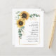 Create a modern Sunflower Floral Budget Wedding invitation card with this cute template featuring beautiful rustic floral bouquet, geometric gold effect frame, qr code, with script and modern simple typography.