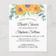 Invite family and friends to a Bridal Shower with this stylish invitation decorated with watercolor sunflowers, eucalyptus and greenery in shades of yellow, green and gold.