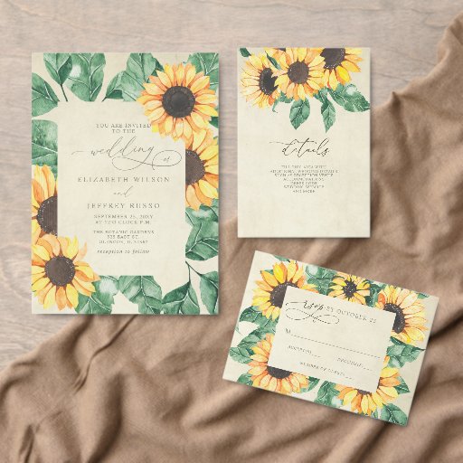 Watercolor Sunflowers Country Wedding InvitationsDesigned by Maria G