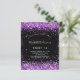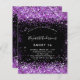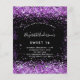 A modern, stylish and glamourous invitation for a Sweet 16, 16th birthday party. A black background with purple faux glitter dust. The name is written with a modern hand lettered style script. Personalise and add your party details.