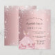 A modern, stylish and glamourous invitation for a Sweet 16, 16th birthday party. A blush pink faux metallic looking background with faux silver glitter and a rose gold ballgown. The name is written with a modern hand lettered style script. Personalise and add your party details.