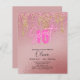Pretty girly glamour is the essence of this faux pink and gold glitter foil sweet 16, sixteenth girls birthday party invitation. Text template fields both sides allow you to include RSVp, Gift Registry and any other sweet16 party event details as required.