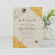 This Sweet as Can Bee baby shower invitation has watercolor honeycombs and sweet little bumblebees making heart shapes as the fly.
