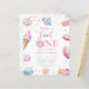 Budget sweet one pastel pink doughnut candy girl first birthday invitation.