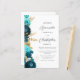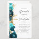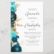 The left-hand edge of this elegant modern wedding invitation features a teal and aqua floral border trimmed with gold faux foil foliage. The customisable text combines charcoal grey script and sans serif fonts on a white background. The reverse side provides space for wedding details on a solid white background, along with a QR code guests can scan to visit your website and RSVP, which saves the cost of printing and mailing separate RSVP cards.