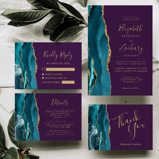 Teal Gold Agate Purple Wedding SuiteDesigned by Akhates Designs