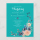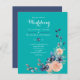 BUDGET Teal Navy Coral Floral Wedding Invitations