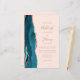 Save the cost of printing and mailing separate RSVP cards with this elegant modern all-in-one budget wedding invitation. The left-hand edge features a teal blue watercolor agate border trimmed with rose gold faux glitter. The customizable text combines dusty rose handwriting, copperplate and italic fonts on a blush pink background. The reverse side provides space for wedding details, along with a QR code guests can scan to visit your website and RSVP.