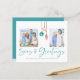 Budget Seas and Greetings Seashell Ornament Holiday Photo Christmas Cards featuring turquoise blue and sandy tan shell ornaments hanging from sailing jute rope with elegant typography. Add two of your photos and a personal message for a fun nautical holiday card. **Our BUDGET paper is smaller, lighter, and more delicate, but still beautiful! Don't forget the envelopes!** If you need assistance or matching items, please contact us at cedarandstring@gmail.com.
