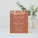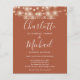 Featuring pretty string lights and signature style names. This elegant budget terracotta wedding invitation can be personalised with your wedding details in chic lettering and special photo on the reverse. Designed by Thisisnotme©