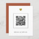 This sheet has a white front and a terracotta background on the reverse. On the front, you'll list the QR code of your wedding website where your guests can RSVP, as well as your names. On the reverse, you'll add a personal message to your guests. You can then place your first names, or if you prefer, you can delete this and sign it at home.