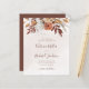 Modern bohemian style budget Save the date cards featuring watercolor flowers and fall leaves in earthy tones like rust brown, burnt orange and terracotta. Perfect choice for autumn weddings.