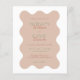This beautiful wedding invitation is framed by a delicate wave scallop border. It features a tranquil palette with soothing shades of terracotta complemented by soft greens and earthy tones. The playful yet sophisticated fonts dance across the page, blending whimsy with elegance, and selected words highlighted in deep sage green add a delightful pop of colour. More than just an invitation, it's a prelude to a celebration filled with charm and joy, perfectly suited for couples seeking a mix of fun and sophistication in a design that softly speaks of nature and love.