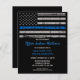 Thin Blue Line Police Graduation Invitations or Police Retirement Party Invitations. Celebrate years of dedicated service, or celebrate your new police academy graduate, and invite friends and family to your law enforcement party with these Thin Blue Line Flag Police Academy Graduation Invitation and Police retirement invitations - USA American flag design in Police Flag colours, distressed design. These budget police graduation invitation cards are an alternative to free police graduation invitations .. This police officer graduation invitation is also perfect for police retirement invitations, change venue in personalisation. See our collection for matching police retirement gifts, police graduation gifts,party favours, and supplies. COPYRIGHT © 2021 Judy Burrows, Black Dog Art - All Rights Reserved. Budget Thin Blue Line Law Enforcement Graduation