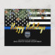 Send Merry Christmas greetings to friends, business' , fellow law enforcement departments and your community with this unique Thin Blue Line Police Department Christmas Card - American Flag in police flag colours, modern black and blue with holly leaves and berries and elegant gold script. Personalise with police department logo, message and department . These budget merry christmas postcards need to be mailed as oversized postcards so may incur standard postage fees but they don't need an envelope or a return address label. COPYRIGHT © 2020 Judy Burrows, Black Dog Art - All Rights Reserved. Budget Thin Blue Line Police Christmas Cards