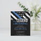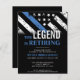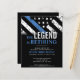 This design features a police force flag with black and white stripes, and a thin blue line stripe as well. "The Legend is Retiring" text sits above all of the party details for the retiring law enforcement officer, sheriff, captain, or chiefs retirement party details.