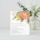 Colourful Tropical Foliage Floral Wedding. A budget price SMALLER 4.5” x 5.6” alternative. Available in a SEMI-GLOSS 110 lb CARD STOCK which is the default option (thicker for invitations), OR a SATIN FINISH 80 lb THINNER PAPER STOCK (ideal for enclosures). Envelopes are an optional extra and are slightly larger than the card size. A flourish of tropical pampas grasses, leaves and a coral flower flows in from the top right with text aligned to the left below. Easily personalise the text and you can also change font styles and colours if you wish via the Click to Customise Further option.