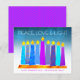 “Peace, love & light.” A playful, modern, artsy illustration of boho pattern candles in a menorah helps you usher in the holiday of Hanukkah. Assorted blue candles with colourful faux foil patterns overlay a turquoise gradient to white textured background. Faux hot pink purple diamond pattern foil on a cornflower blue background for the reverse side. Feel the warmth and joy of the holiday season whenever you send this stunning, colourful, personalised Hanukkah flat greeting card. Matching envelopes, stickers, tote bags, wrapping paper, serving trays, home décor, and more are also available. Send this to someone special!