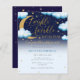 This is an adorable budget friendly boy first birthday invitation based on the “Twinkle twinkle little star” nursery rhyme. The design features a cute handwritten script calligraphy font, a golden moon with gold stars and cute blue fluffy clouds in a twinkling starry night sky. This adorable first birthday invitation would be perfect for any little star about to celebrate their first birthday!