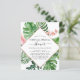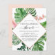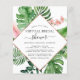 Budget Tropical Palms Watercolor Faux Rose Gold Foil Geometric Wedding Virtual Bridal Shower Invitations - includes beautiful and elegant script typography with modern botanical blush pink flowers and tropical Hawaiian greenery for the special Bride to Be celebration.