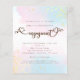 Watercolor Blue Pink Heart Script Engagement. A budget price SMALLER 4.5” x 5.6” alternative. Available in a SEMI-GLOSS 110 lb CARD STOCK which is the default option (thicker for invitations), OR a SATIN FINISH 80 lb THINNER PAPER STOCK (ideal for enclosures). Envelopes are an optional extra and are slightly larger than the card size. A beautiful Watercolor wash is in the background with gold splashes to the top right and bottom left. Engagement is set in an elegant script with romantic heart swashes either end. Easily personalise the rest of the text to your own.