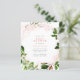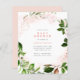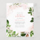 Spring botanical baby shower invitation featuring blush pink watercolor with lush greenery forming a wreath around your details in modern typography. As part of the budget selection here on Zazzle, these invitations do not come with envelopes nor do they fit snugly in a standard-sized envelope. The closest size is A6 but there will be a gap of approximately half an inch. If you don't mind the lack of snugness you could use such widely available A6 envelopes. Otherwise, this design can be transferred to a standard 5x7 format (which comes with envelopes) using the design transfer tool. As a rough guide, as of the time of writing, 100 budget invitations (including a volume discount) would cost around $39 whereas 100 standard 5x7 invites including envelopes would cost approximately $135. Your mileage may vary depending on Zazzle's available promo codes, site-wide sales, or changes in pricing.