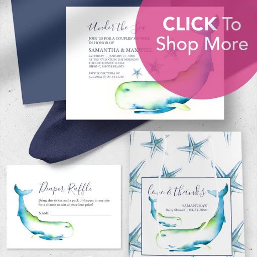Are you planing a baby shower? This listing is for a cute budget under the sea boy's baby shower invitation. A charming nautical themed invitation featuring a replica of my original watercolor whale and starfish in shades of blue and green. This invite is perfect for coastal and beach theme coed showers. If you are wondering where to buy invitations and would like to see matching trendy items and more summer party invites visit www.zazzle.com/dotellabelle