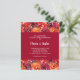 Beautiful watercolor flowers in red, orange, dark purple claret and green leaves and your wedding details in chic white lettering are featured on a deep red band on these affordable 4.5" x 5.6" bright white semi-gloss 110 lb paper invitations. **White envelopes are optional and can be added to your order at an additional cost. Be sure to double-check your order before adding it to your cart as what you see on the screen is what will be printed. The Live Design Service can help you with your design layout if needed. MATCHING items in our store.