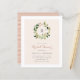 Chic and stylish botanical bridal shower invitation. This invite features a watercolor greenery wreath with faux gold accents framing the bride-to-be's monogram. Your bridal shower details are displayed with simple typography on top of a blush overlay. Reversing to pastel peach stripes. Perfect for spring or summer celebrations. As part of the budget selection here on Zazzle, these invitations do not come with envelopes nor do they fit snugly in a standard-sized envelope. The closest size is A6 but there will be a gap of approximately half an inch. If you don't mind the lack of snugness you could use such widely available A6 envelopes. Otherwise, this design can be transferred to a standard 5x7 format (which comes with envelopes) using the design transfer tool. As a rough guide, as of the time of writing, 100 budget invitations (including a volume discount) would cost around $39 whereas 100 standard 5x7 invites including envelopes would cost approximately $135. Your mileage may vary depending on Zazzle's available promo codes, site-wide sales, or changes in pricing.