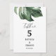 watercolor palm table number wedding day decor. On trend script text, part of a matching wedding suite.