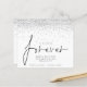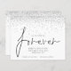 Budget We Decided On Forever Silver Glitter Save The Date. A budget price SMALLER 4.5” x 5.6” alternative. Available in a SEMI-GLOSS 110 lb CARD STOCK which is the default option (thicker for invitations), OR a SATIN FINISH 80 lb THINNER PAPER STOCK (ideal for enclosures). Envelopes are an optional extra and are slightly larger than the card size. We Decided on Forever which is in a stylish set script is in the centre. The rest of the text you can easily personalise. A silver faux glitter border runs along the top on both sides. Text and background colours can be changed if you wish to better suit your wedding theme via the customise further option.