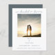 A value for money BUDGET alternative on a smaller size 4.5 x 5.6” semi-gloss 110lbs weight, which is of similar thickness to a postcard (however is not suitable to use as a postcard.). PLEASE NOTE there is ONE invite per sheet. Budget We Decided on Forever Photo Save The Date. A modern design with handwritten style set grey script for We Decided On Forever above your photo which is in square format and the rest of the text you can easily personalise. Choose one of the most romantic photos of you both and replace the sample photo in the template placeholder with it. You can also change the white background on the front, and coordinating grey on the back, via the Customise Further option if you wish, as well as the text colour to better match your chosen photo.