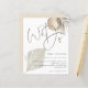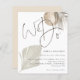 We Do Boho Pampas Grass QR Code Wedding Invitation. A budget price SMALLER 4.5” x 5.6” alternative. Available in a SEMI-GLOSS 110 lb CARD STOCK which is the default option (thicker for invitations), OR a SATIN FINISH 80 lb THINNER PAPER STOCK (ideal for enclosures). Add your QR code to your wedding website on the back makes this a convenient option for your guests to RSVP and see all the details without the need for separate RSVP and details cards. Stylish set script We Do takes centre stage at the top in brown. The rest of the text you can easily personalise. A circular sphere in shades of cream overlaid with pampas grass is to the top right, and rustic fan to the bottom left corner. A coordinating cream is on the back.