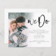 Budget We Do Script Photo QR Code Wedding Invitation. A budget price SMALLER 4.5” x 5.6” alternative. Available in a SEMI-GLOSS 110 lb CARD STOCK which is the default option (thicker for invitations), OR a SATIN FINISH 80 lb THINNER PAPER STOCK (ideal for enclosures). Add your QR code to your wedding website on the back making this a convenient option for your guests to RSVP and see all the details without the need for separate RSVP and details cards. You can create QR codes for free online. Simply search “QR code creator” and lots of options come up to create for free. A minimalist fun design to let everyone know your happy news. Simply replace the sample photo with your own favourite. A gradient overlay layer is on top of your photo so it fades out as it reaches the centre with the text partially overlaid on top. We Do is in a stylish bold set script and easily personalise the rest of the text.