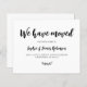 Budget Minimalist Simple „We've Moved” Whimsical Typography New Home Moving Announcement Card. Let your friends and family know your new address using these minimalist card elegant pretty handwritten Calligraphy font script „We Have Moved” text on front and the back side „Please keep in touch!” text in black and white. Easy to customise with your own details.