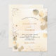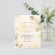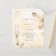 A golden watercolored background decorated with golden eucalyptus and faux gold glitter dust. Personalise and your name and ceremony details. Black and golden coloured letters.