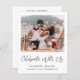Chic budget-friendly elopement or private wedding announcement and post-wedding reception party invitation. The front features your photograph, "Celebrate With Us" in an elegant script and your first names and wedding date and location in simple modern typography. On the reverse side, personalise your wedding or elopement announcement in more detail, add a reception or party invitation, input your wedding website's URL address to create a QR code for your guests to scan for more information and to RSVP online, and add your names in a signature-like script.