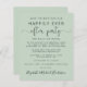 Budget-friendly sage green save the date announcement for a reception or party to celebrate your elopement or private wedding. "Save the Date For Our Happily Ever After Party" is written in simple typography and an elegant script with swashes. Personalise your wedding announcement and add party or reception save the date details and your names in a signature-like script. On the reverse side add your first names and wedding and reception dates.