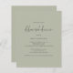 Wedding Rehearsal Dinner Light Sage Green Invite. A budget price SMALLER 4.5” x 5.6” alternative. Available in a SEMI-GLOSS 110 lb CARD STOCK which is the default option (thicker for invitations), OR a SATIN FINISH 80 lb THINNER PAPER STOCK (ideal for enclosures). Envelopes are an optional extra and are slightly larger than the card size. This modern typography design has elegant informal set script for Rehearsal Dinner and the rest of the typography you can easily personalise. You can also change text and background colours on either side if you wish via the Customise Further option.