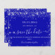 A modern and elegant Save the Date for a wedding. A navy royal background decorated with faux silver glitter dust. Personalise and add a date and names. The text: Save the Date is written with a large trendy hand lettered style script.