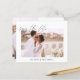Budget Wedding Save the Date Cards that have a photo on the front and back. The Save the Date cards contain a modern hand lettered cursive script typography that are elegant, simple and modern to use after you minimalist simple wedding day celebration.